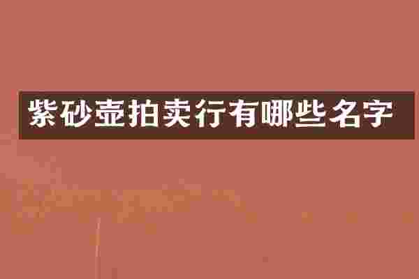紫砂壶拍卖行的名字有很多,包括但不限于以下这些:1. 东方收藏紫砂壶拍卖行。2. 艺鼎紫砂壶拍卖中心。3. 盛世收藏紫砂壶拍卖行。4. 紫砂之家拍卖行。5. 龙